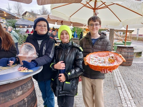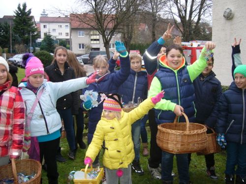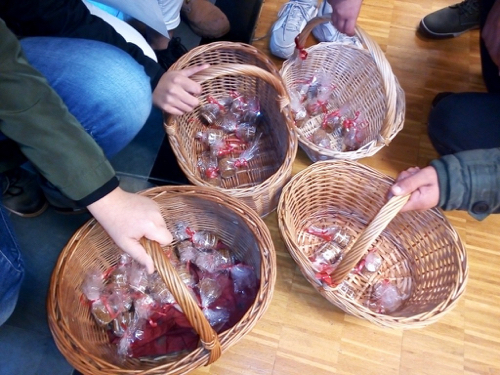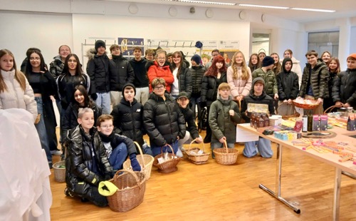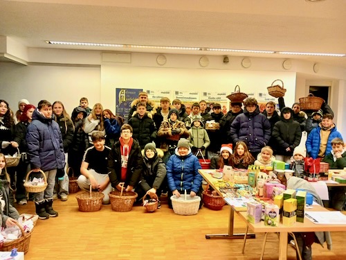 Beim Ansfeldner Adventmarkt waren die SchülerInnen mit vielen Körben unterwegs.