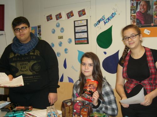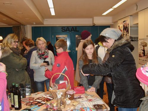 Beim Verkauf von fair gehandelten Produkten des Eine-Welt-Laden Traun (Kaffee, Tee, Schokolade, Schmuck usw.) versuchten die SchülerInnen auf die ungerechten Handels- und Lebensbedingungen hinzuweisen. Ein sinnvoller, lehrreicher Adventsamstag außerhalb des Klassenraumes.