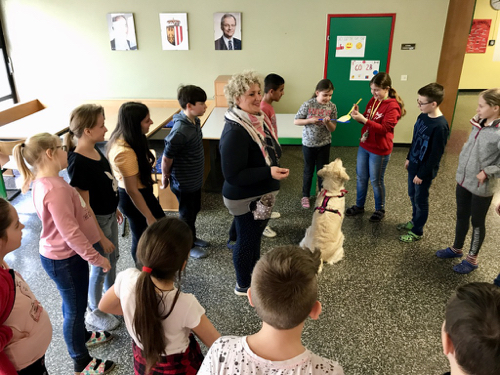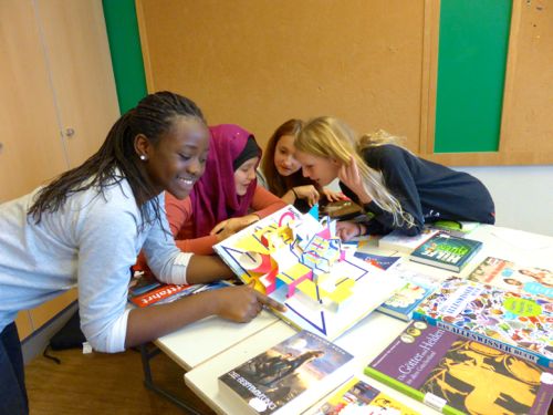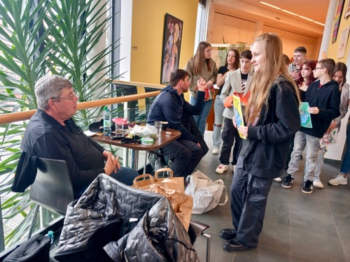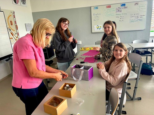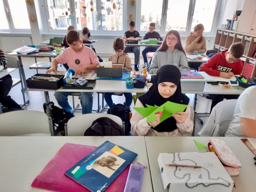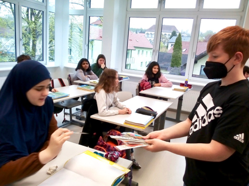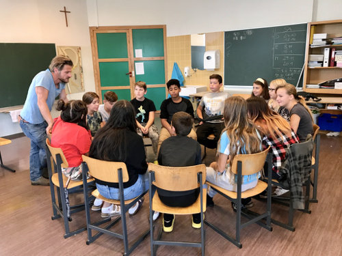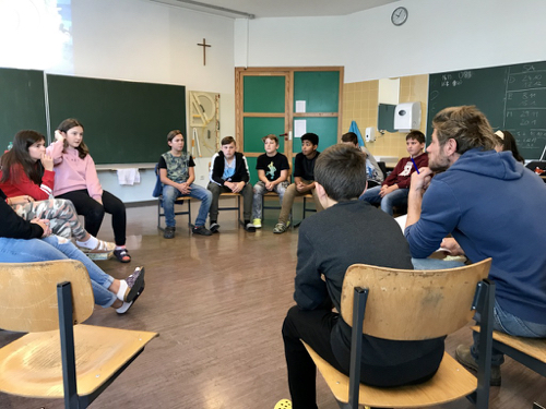 Der Jugendcoach und Soziologiestudent Bruno Eddy Esien aus Kamerun berichtete zusammen mit unserer Schülerin Palvine über das oft schwere alltägliche Leben in Kamerun. Die Begegnung, das Nachdenken und Reflektieren ermöglichen den SchülerInnen Erfahrungen über den Klassenraum hinaus zu machen.IIn Kamerun werden an die 230 unterschiedliche Sprachen und Dialekte gesprochen. Um die Bedeutung der Sprachenvielfalt aufzuzeigen, wird mit Briefen eine Brücke zwischen den Kindern in Kamerun und den SchülerInnen aus der 2a aufgebaut.
