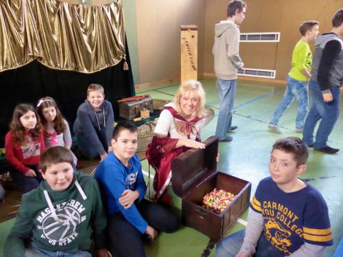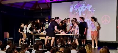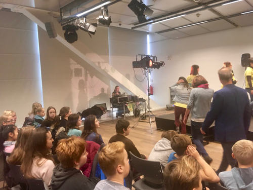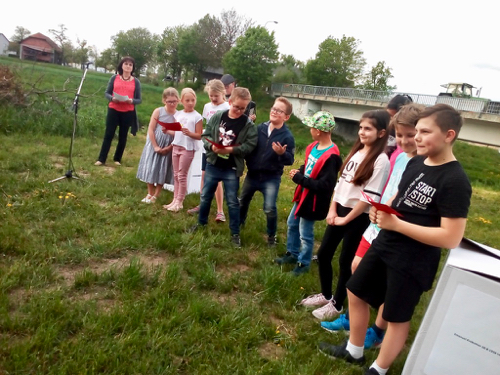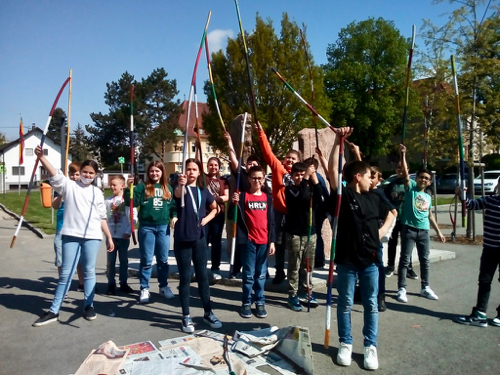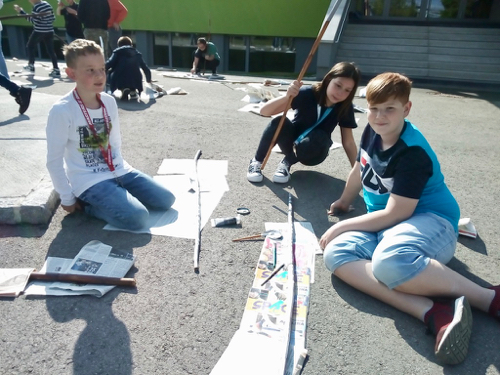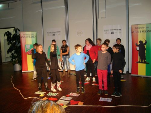 SchülerInnen der NMS Ansfelden gestalten in "Koproduktion" mit der VS Ansfelden den Willkommensgruß beim aHaidaFest 2014
