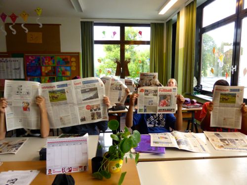Zis (Zeitung in der Schule) unterstützte uns mit einer täglichen Gratiszeitung. Fast täglich wurden die News mehr oder minder mit Freude gelesen, bearbeitet und die Presseberichte mit der großen Schere "geschlachtet".