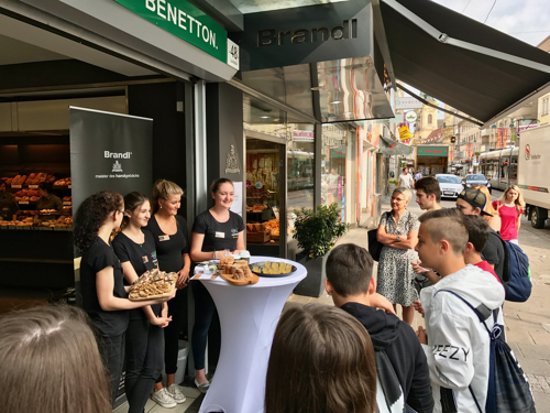 Laura: Wir haben ein Jausenbuffet für die SchülerInnen der ganzen Schule organisiert. Das war sehr viel Arbeit. Die Basketballtorte hat gut ausgesehen.