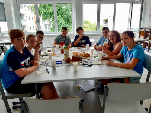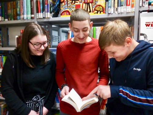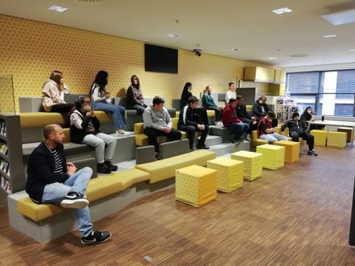 Die SchülerInnen besuchen die Schulbibliothek und entdecken bei einer Buchralley die geheimen Ecken und Orte der Bibliothek im 4. Stock.
