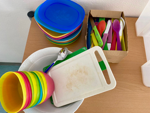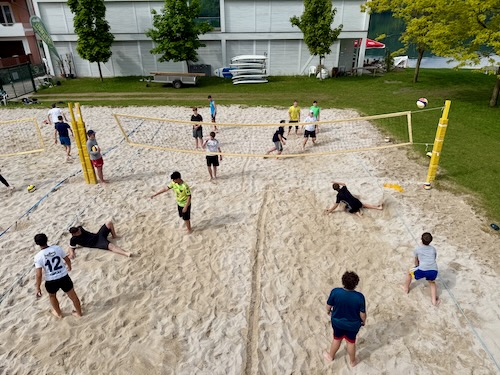 Leon: Nach Beachvolleyball mussten wir unsere Füße im See waschen.