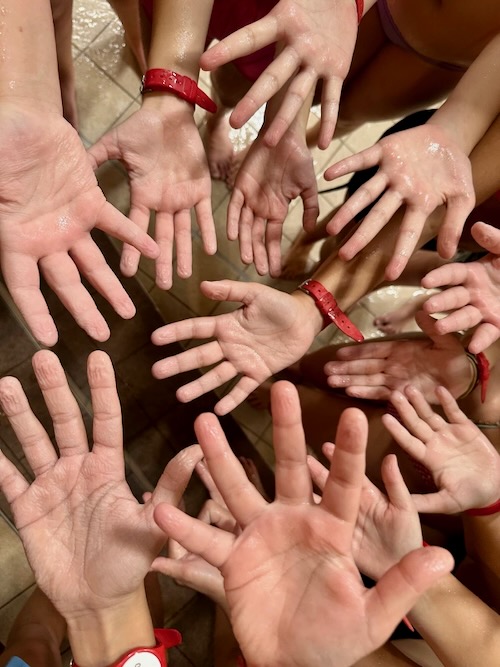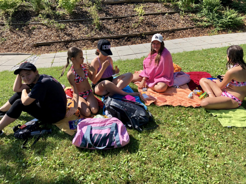 Madlen: Wir sind im Schwimmbad vom Turm gesprungen.