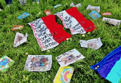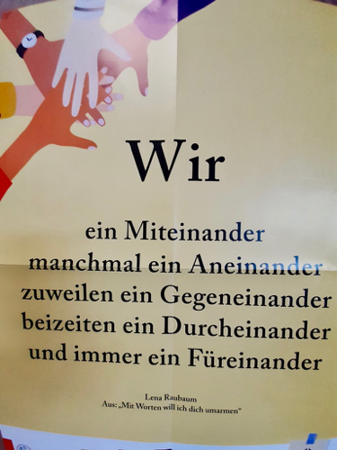 Wir möchten: Niemand darf wegen seiner Religion, seiner Sprache, einer Krankheit, wegen der politischen Haltung oder der sexuellen Orientierung getötet oder ausgegrenzt werden. So etwas darf nie mehr passieren.Uns fällt auf: auch heute werden Menschen wegen ihrer Herkunft ausgegrenzt, wegen ihrer Langsamkeit und Sprache ausgespottet, oft werden Menschen die irgendwie anders sind belächelt, auch von Gleichaltrigen. Da beginnt Ausgrenzungen. Junge und Alte sollen etwas dagegen tun und achtsam sein.