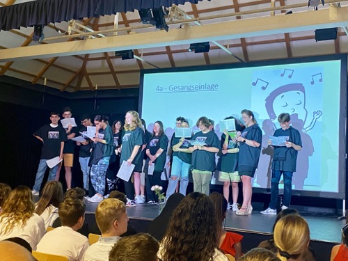 Dem Abschluss im ABC stand nichts mehr im Weg. Es wurde richtig gute Musik gespielt, humorvolle, coole Beiträge aufgeführt, (nein, nein aufgeführt hat sich im ABC gar niemand!) feine Filme geschaut, sich an der Jugendsprache erfreut und es konnten sich 30 SchülerInnen über ihre ausgezeichneten Leistungen freuen.Was soll ma jetzt noch sagen: Frohe Ferien und chillt in den Tag hinein!