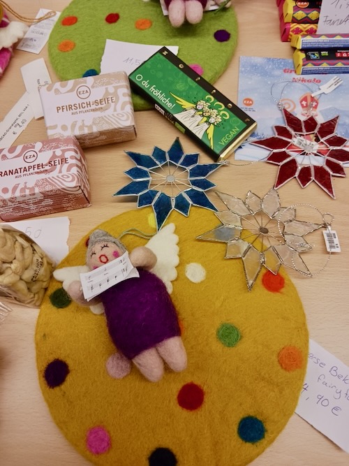 Beim Ansfeldner Adventmarkt wurden von den SchülerInnen kalte Fliesen für heiße Töpfe verkauft. Weiters wurden EZA-Produkte des Weltladens Traun angeboten.
