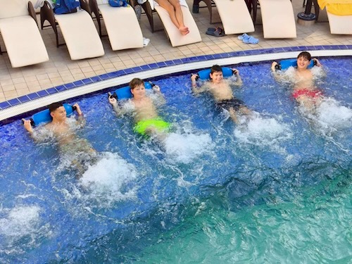 Einen ganzen Tag durften sich die Mädchen und Buben der zweiten Klassen in der Kurtherme Bad Schallerbach vergnügen. Schwimmen was das Becken hält, tümmeln im wunderbaren Nass und auf der Liege Wurstsemmerl, Pommes mit Apfel und Co schmausen. Dazwischen mal wieder durch die Röhre rutschen, Spaß haben und viel Lachen und sich zerkugeln. So ein Tag tut richtig gut.