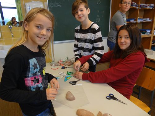 Koffer öffne dich! Und siehe da, aus dem alten schwarzen und sehr schweren Holzkoffer kommt ein voll funktionstüchtiges Cello zum Vorschein! Die Schülerinnen und Schüler der dritten Klassen staunen nicht schlecht und haben große Freude am Angreifen, Spielen und Erforschen des Instruments.Doch das war noch nicht alles! Koffer öffne dich! In dem zweiten, unscheinbaren rechteckigen Koffer liegen die Teile einer Blockflöte, und was für einer! Diese Großbassblockflöte ist größer als die Musiklehrerin! Da lassen sich die Schülerinnen und Schüler der ersten und zweiten Klassen nicht zweimal bitten und bestaunen und betasten das seltene Instrument.