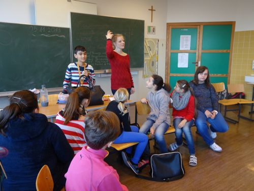 Wenige Tage nach dem Tag der Kinderrechte am 20. November besuchte Karen aus Kenia, eine dunkle, jung, zarte, kleine Frau die SchülerInnen der 1a und 1b Klassen der Informatik HS Ansfelden. Sie war als 16-jährige Jugendliche alleine und ohne Eltern nach Österreich gekommen. Gemeinsam mit den MenschenrechtstrainerInnen Ursula und Dominik Schatz von SOS Menschenrechte aus Linz besuchte sie die SchülerInnen, um den fremden Worten FLUCHT, ASYL und INTEGRATION ein Gesicht zu geben.