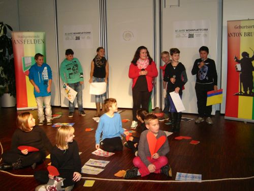 In der Stadt Ansfelden leben viele verschiedene Menschen, die verschiedene Sprachen sprechen, ca. 100 Sprachen und Dialekte aus ca. 80 Nationen. Auf dem Erdball werden ungefähr 6ooo Sprachen gesprochen. Jede Sprache hat einige Tausend Wörter. Es gibt also viele Millionen Wörter auf der Welt, die von Millionen von Menschen gesprochen werden. Trotzdem sprechen wir eine Sprache, die alle verstehen: die Sprache des Herzens Miteinander, Trösten, Lachen, Frieden, meine Familie, mein Zuhause sind Worte, die allen gut tun und die alle verstehen.