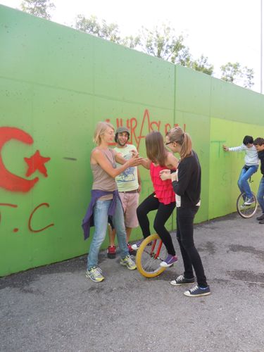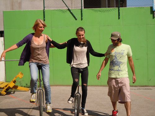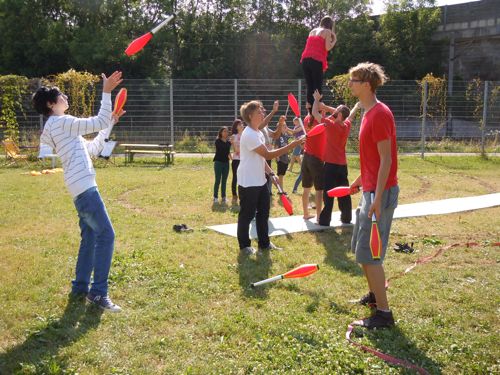 Die ArtistInnen des Zirkus Giovanni ermutigten die Jugendlichen bei den Workshops zum Mitmachen, zum Keulenschwingen, zum Tanzen, zum Einradfahren, zum "auf Menschenklettern" als wären sie Bäume. Es war ein gelungener Projekttag im Jugendgarten ECHO. Bei der gemütlichen Wanderung zurück zur Schule wärmte die Sonne die erhitzten Gesichter.