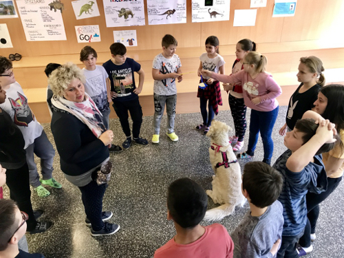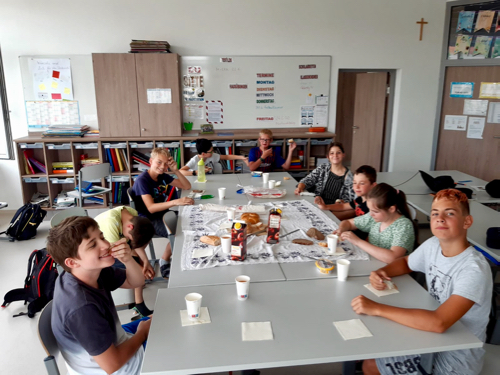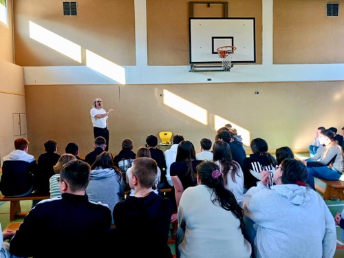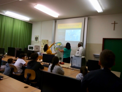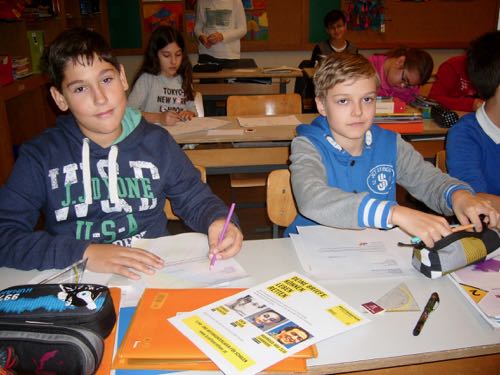 Der Jugendcoach und Soziologiestudent Bruno Eddy Esien aus Kamerun berichtete zusammen mit unserer Schülerin Palvine über das oft schwere alltägliche Leben in Kamerun. Die Begegnung, das Nachdenken und Reflektieren ermöglichen den SchülerInnen Erfahrungen über den Klassenraum hinaus zu machen.IIn Kamerun werden an die 230 unterschiedliche Sprachen und Dialekte gesprochen. Um die Bedeutung der Sprachenvielfalt aufzuzeigen, wird mit Briefen eine Brücke zwischen den Kindern in Kamerun und den SchülerInnen aus der 2a aufgebaut.