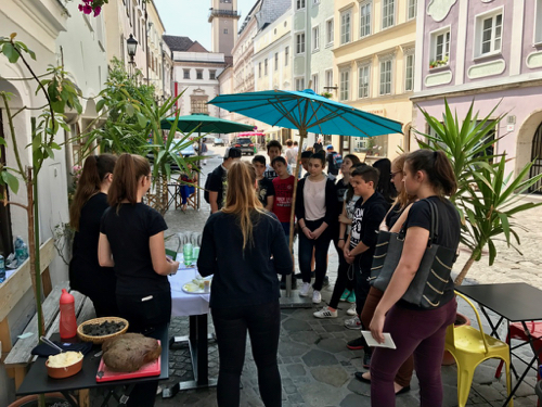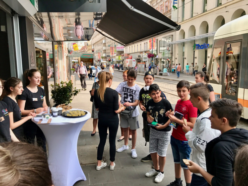 Da wird gerne die Einladung der KEM Region Traun-Kremstal angenommen. Die ersten Klassen lernen ein Förderprogramm der 6 Gemeinden kennen und dürfen sich mit Energie- und Klimaschutz auseinandersetzten, es wird ausprobiert, fotografiert und zugehört, natürlich mit einer coolen App, als Schnitzeljagd verkleidet. 200 Schülerinnen nahmen daran teil. Hautnah ist die Hitze zu spüren.
