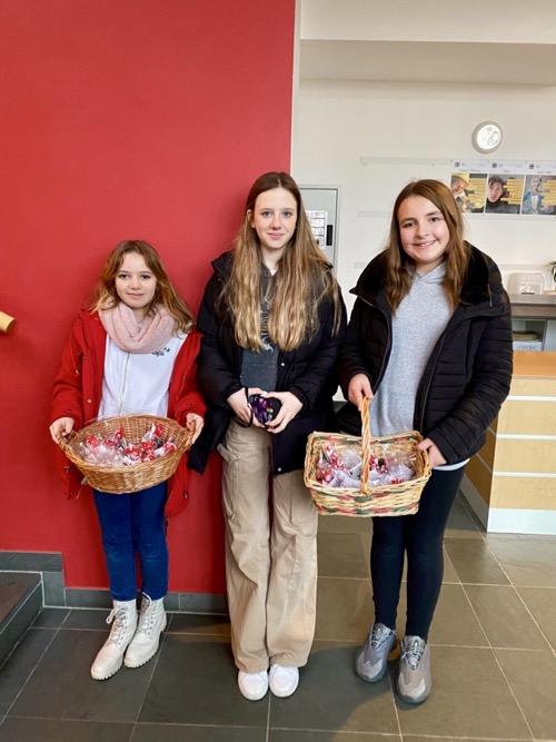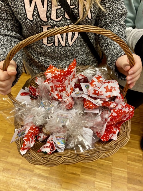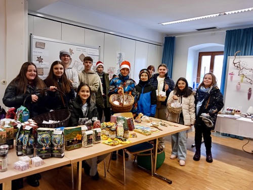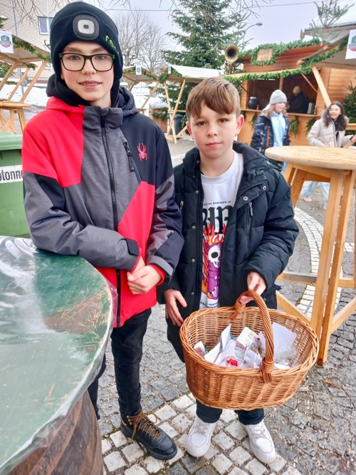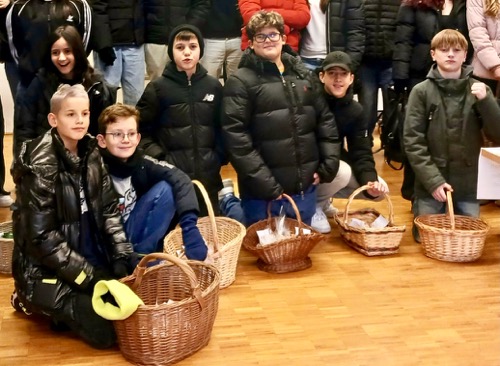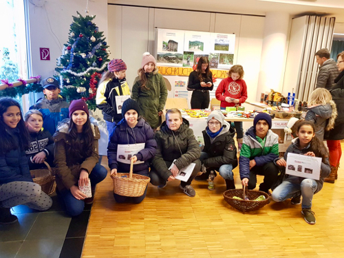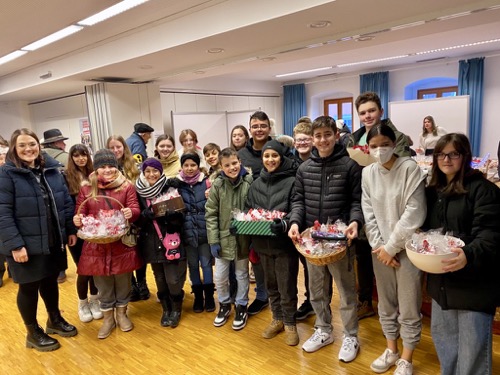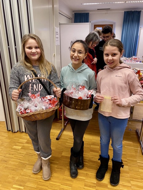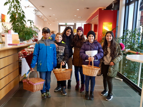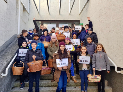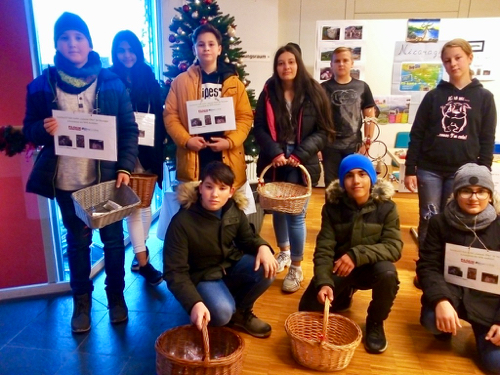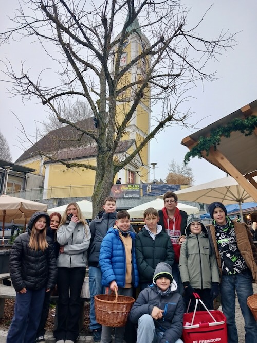Beim Ansfeldner Adventmarkt waren die SchülerInnen mit vielen Körben unterwegs.
