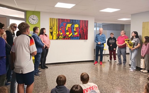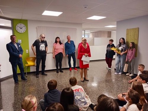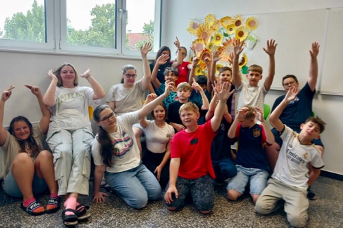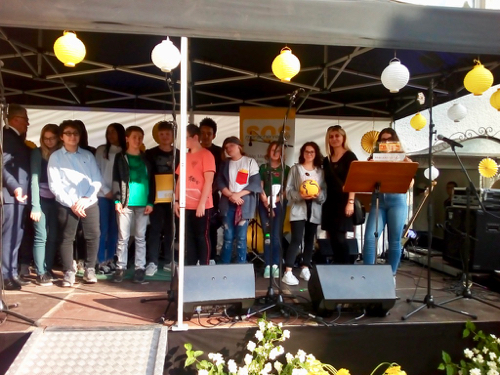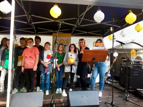 SchülerInnen der NMS Ansfelden gestalten in "Koproduktion" mit der VS Ansfelden den Willkommensgruß beim aHaidaFest 2014