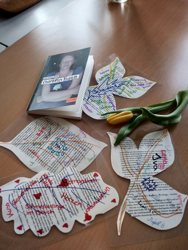 Müll-Elfchen aus dem Deutschunterricht der 1a und 1b zeigen den Müllwahnsinn auf.Das Lesebuch zur Nachhaltigkeit mit dem Gedicht Das Böse“ von Eugen Roth hat die SchülerInnen angeregt, selber Elfchen zu probieren.