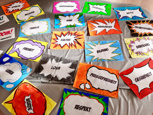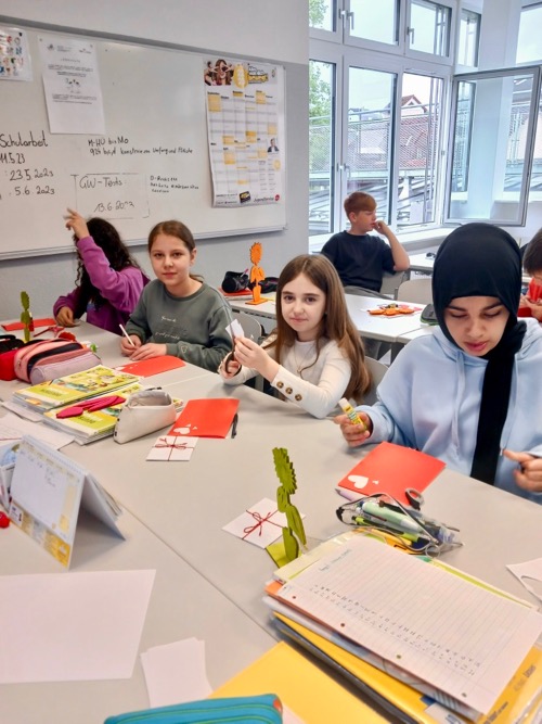 Ein Mann und eine Frau sind eingesperrt, weil sie sich für Versammlungsfreiheit, Demokratie und Bildung einsetzen. Weil die Gefangene in Myanmar eine Tierfreundin ist, haben die SchülerInnen Tiere auf die Postkarten gezeichnet. Es soll für sie eine briefliche Ermutigung sein.
