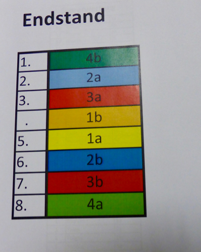 Die beiden ersten Plätze gingen an die 2a (Gruppe A) und an die 3a (Gruppe B).