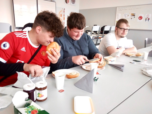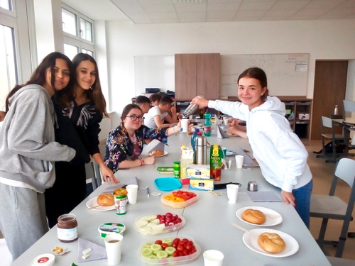 Laura: Wir haben ein Jausenbuffet für die SchülerInnen der ganzen Schule organisiert. Das war sehr viel Arbeit. Die Basketballtorte hat gut ausgesehen.