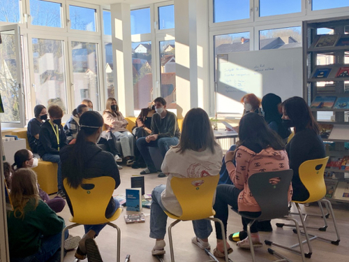 Die SchülerInnen besuchen die Schulbibliothek und entdecken bei einer Buchralley die geheimen Ecken und Orte der Bibliothek im 4. Stock.
