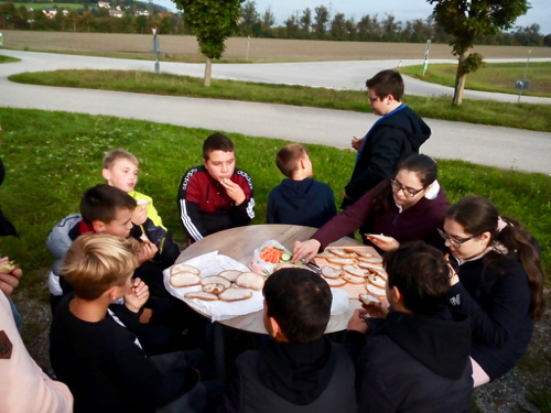 Bei der kurzen Wanderung und die „große Pause“ unter einem schönen Herbstbaum lässt uns spüren wie gut es das Leben mit uns meint.Sarah B. aus der 4c ist Coautorin dieses Beitrags, weil sie Journalistin werden möchte.