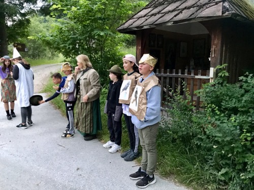 An einem grauen nebeligen Morgen begaben sich die Mädchen und Buben der 2. Klassen in die urgeschichtliche Vergangenheit ca. 700 v. Christus. Das Erlebnisdorf Mitterkirchen ermöglicht eine Kultureise in die sogenannte "Hallstattzeit". Dort lernten wir den Alltag der Kelten kennen: