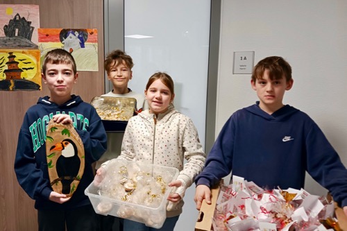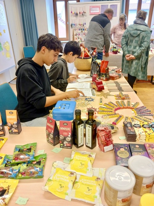Beim Ansfeldner Adventmarkt wurden von den SchülerInnen kalte Fliesen für heiße Töpfe verkauft. Weiters wurden EZA-Produkte des Weltladens Traun angeboten.