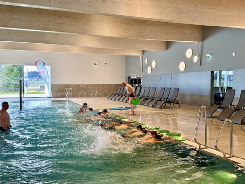 Einen ganzen Tag durften sich die Mädchen und Buben der zweiten Klassen in der Kurtherme Bad Schallerbach vergnügen. Schwimmen was das Becken hält, tümmeln im wunderbaren Nass und auf der Liege Wurstsemmerl, Pommes mit Apfel und Co schmausen. Dazwischen mal wieder durch die Röhre rutschen, Spaß haben und viel Lachen und sich zerkugeln. So ein Tag tut richtig gut.