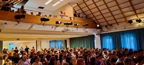 Dem Abschluss im ABC stand nichts mehr im Weg. Es wurde richtig gute Musik gespielt, humorvolle, coole Beiträge aufgeführt, (nein, nein aufgeführt hat sich im ABC gar niemand!) feine Filme geschaut, sich an der Jugendsprache erfreut und es konnten sich 30 SchülerInnen über ihre ausgezeichneten Leistungen freuen.Was soll ma jetzt noch sagen: Frohe Ferien und chillt in den Tag hinein!