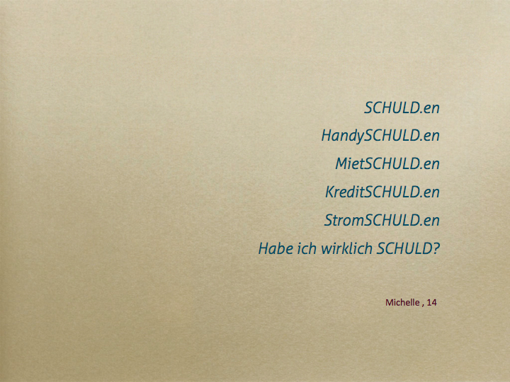 Die SchülerInnen der Informatik-HS Ansfelden setzten sich fächerübergreifend sehr kritisch mit Verschuldung, Armut und deren Folgen für Kinder, Jugendliche und Erwachsene auseinander. Die Arbeiten wurden im Rahmen einer Fachtagung der Schulnerhilfe OÖ in Linz präsentiert. (s.u. den Beitrag "Maßvoll im Maßlosen")