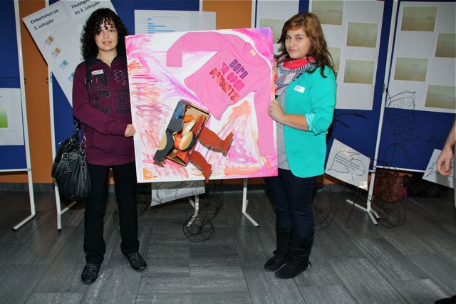HauptschülerInnen präsentieren ihre Arbeiten bei der Fachtagung der Schuldnerhilfe OÖ "Maßvoll im Maßlosen - die moderne Konsumgesellschaft- eine Herausforderung für Erziehung, Bildung und Beratung" in der Fachhochschule für Soziales in Linz am 6. November 2012