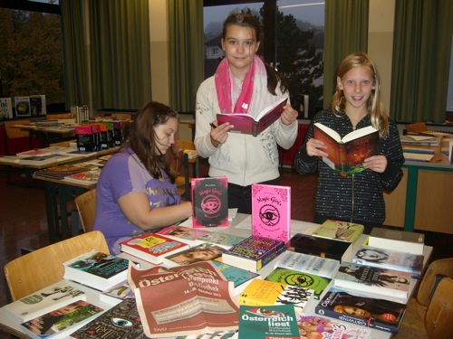 Im Rahmen des österreichweiten Bibliotheksschwerpunkts zur Lesemotivation haben die SchülerInnen der Schule sich mit Bücher, Zeitungen (ZIS in der Schule), mit Vorlesen und beim Schmökern bei der Buchausstellung vergnügt. Egal, ob als Buchdedektivin mit dem richtigen Blick, ob als kritische ZeitungsleserIn in der bunten Welt der Printmedien oder als liebevolle VorleserIn im Familenkreis, um ein Leseblatt in die Schule mitzunehmen, es macht Freude in die - manchmal fremde Welt - der Worte und Texte einzutauchen.Bücher mögen sich nicht rechnen, aber sie zahlen sich aus.