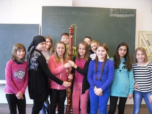 "Was schleppt denn unsere Musiklehrerin Frau Oberleitner da schon wieder mit sich herum?"